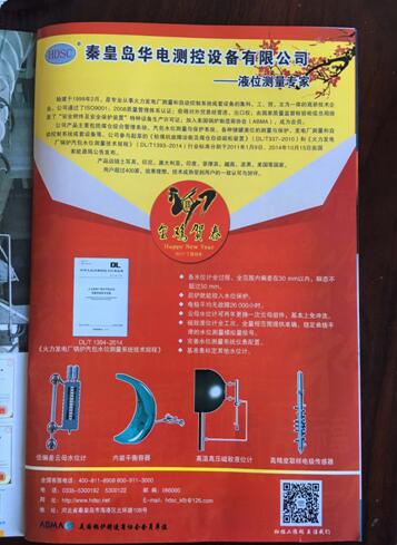 2017年1月,秦皇島華電測控設(shè)備有限公司與《熱力發(fā)電》雜志攜手,為打造權(quán)威交流平臺,在雜志上刊登我公司產(chǎn)品――汽包水位計系列。